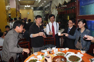 “煮酒论功、举杯同庆”,张总、袁总给大家敬酒